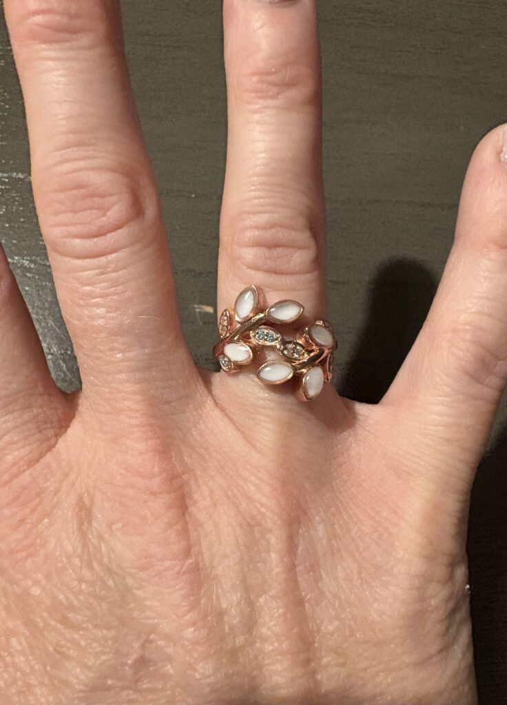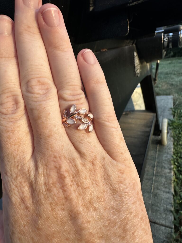 The only reason for 4 and not 5 is the rose gold color wore off within a week or two of getting the ring. I still think it’s gorgeous and the top still has the rose gold coloring, just wish it would’ve lasted a little longer!