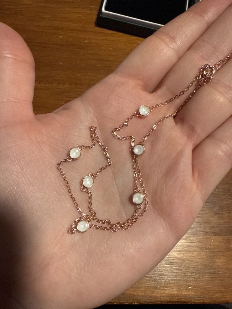 I got the necklace in rose gold plated and oh my gosh it is gorgeous! I already know I’m going to be wearing this all the time! I also got the pearl effect on the breastmilk stones (I don’t feel like my pictures truly captures the rose gold chain color as well!)