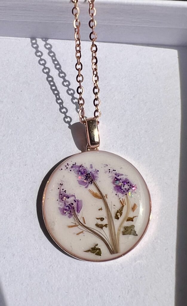 Our Lilac Blue breastmilk necklace transforms your breast milk into a beautiful keepsake pendant. Handcrafted with love and made with high quality materials, our Lilac Blue breastmilk necklace offers the perfect opportunity to showcase your breastfeeding journey as well as the love and devotion you have for your little one. This unique piece of handmade jewelry allows you to carry those sweet memories and joy with you wherever you go. Our Lilac Blue breastmilk necklace is a simple, tasteful 20mm circle filled with your breast milk that comes with a 20 inch flat cable chain. Interested in inclusions? Be sure to specify the unique additions you would like to have in your Lilac Blue breastmilk necklace in the drop down menu before submitting your order.