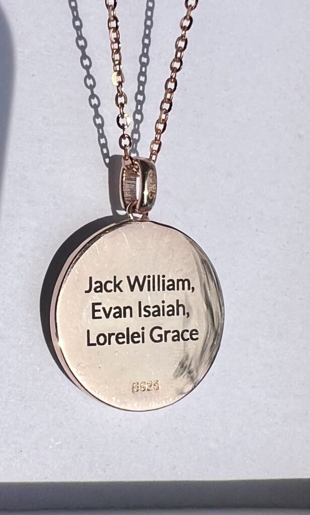 I can’t express enough how special and sentimental this is to me. I have three children and the three flower stems are made of a lock of hair from each of them. The lilacs have pieces of dried purple flowers from my wedding bouquet (almost 15 years ago). I spent almost six of the last thirteen years nursing my three babies and this is such a beautiful way to remember that bond. I love how it turned out and will cherish it always.