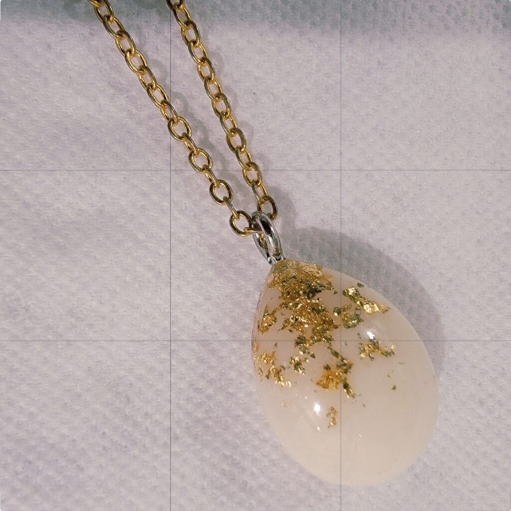 Meet The Original, Petite. Its timeless design captures the pure beauty of your breastfeeding experience. A simple gold-plated chain and loop bail ensure your 18-mm teardrop breastmilk pendant shines above all else. Gold flakes, added by hand, give your stone a look that’s as unique as the bond you share with your baby. A memento designed to last, The Original, Petite comes finished in a special coating for protection against normal wear and tear.